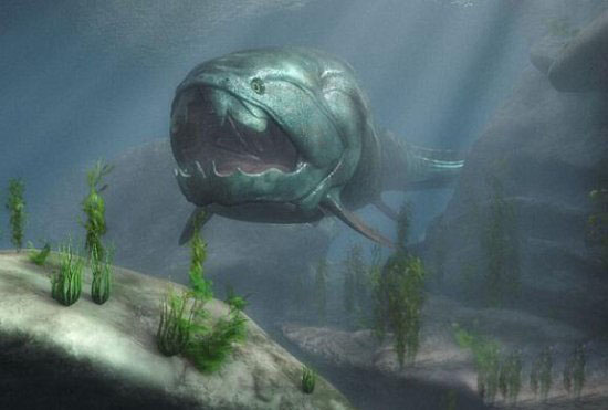又名“胴壳鱼”,是一种活于古生代泥盆纪时期(约3.6亿至4.15亿年前)的大型古生物,身体长约9米,重量可达4吨,咬合力可达500千克,被视为泥盆纪时代最大的(海洋)猎食者。