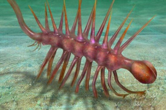 与欧巴宾海蝎一样,生活于大约5.3亿年前的海洋之中,最早发现于加拿大,是寒武纪最著名的动物。头很大,躯干背侧具有7对斜向上生长的强壮的长刺。