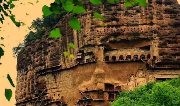 麦积山石窟是在陡峭的悬崖上开凿修建的,悬崖上凿出来的洞窟和佛像在我国的石窟当中也是非常罕见的。周围也有着美丽的景色,被人们称为“小江南”。