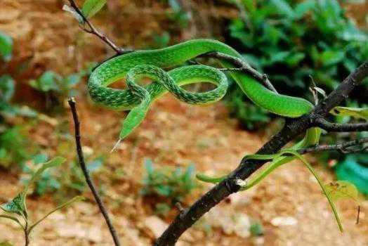 绿瘦蛇也是一种颜值相当高的蛇类,属于有轻微毒素的蛇,这种蛇的体型细长,全长也就在一米左右。背面鲜绿色覆面淡绿色,喜欢在树上捕猎。