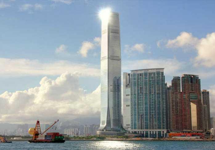 香港环球贸易广场也是香港最高的大陆之一。建筑高度484米,大楼总共118层,从10层到第99层都是写字楼。