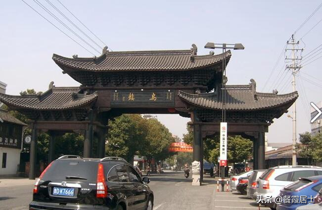 一个小时的车程,我们由西塘来到了乌镇。高大巍峨的黑色牌楼远远映入眼帘。上书金色大字“乌镇”。