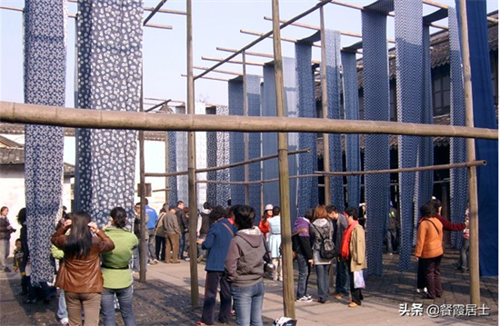 乌镇的河道比西塘要干净许多,偶或能够看到鱼儿搅动水面的水花。建筑比西塘好像也整洁、结实一些。两边的居民生活节奏比较缓慢,店铺开门较晚。江南百床馆展示的床还算比较有特色的,体量很大,估计有些类似于某国外品牌家居,可以拼拆的。否则,这么窄的门面是不可能抬进来这么大的床的。民俗风情馆里有老太太们在压取棉籽,用纺车织棉布的——这东西北方也不稀奇,自己的母亲就会织布。我看过三白酒坊后也未得要领,染坊的院子里挂着高高的几十条蓝色印花布,说是《花样年华》的场景地之一,我压根就没有关注过这个电影,虽然说是著名导演王家卫的作品。钱币馆摆放了密密麻麻世界各地的钱币,眼花缭乱,难以细究;木雕馆的一些东西还是比较有南方代表的,汇源当铺的高高的柜台上露出游客的脑袋,他们在拍照。