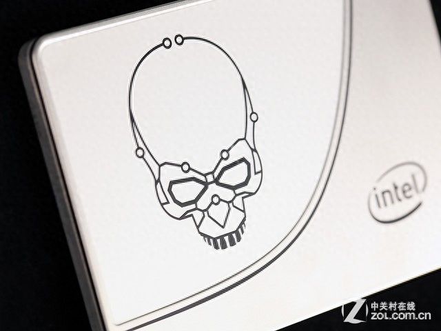 Intel作为行业大佬,不光在性能上有着出色的表现,就连产品的设计和外观也具备着霸气的味道。在SSD的外壳正面印有Intel的骷髅头标识。整个SSD看起来霸气却又不失优雅,一股浓浓的科技暗黑味迎面而来。
