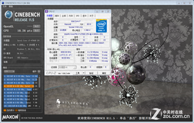 @4.7GHz:CINEBENCH R11.5 CPU成绩为10.26pts