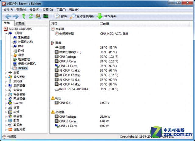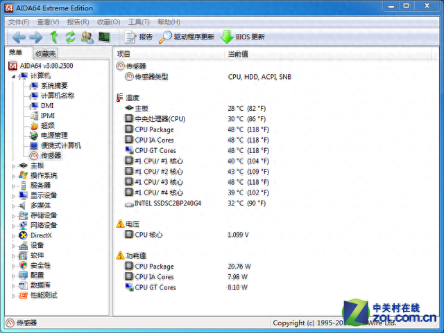 我们采用AIDA64软件对CPU的温度做监控。