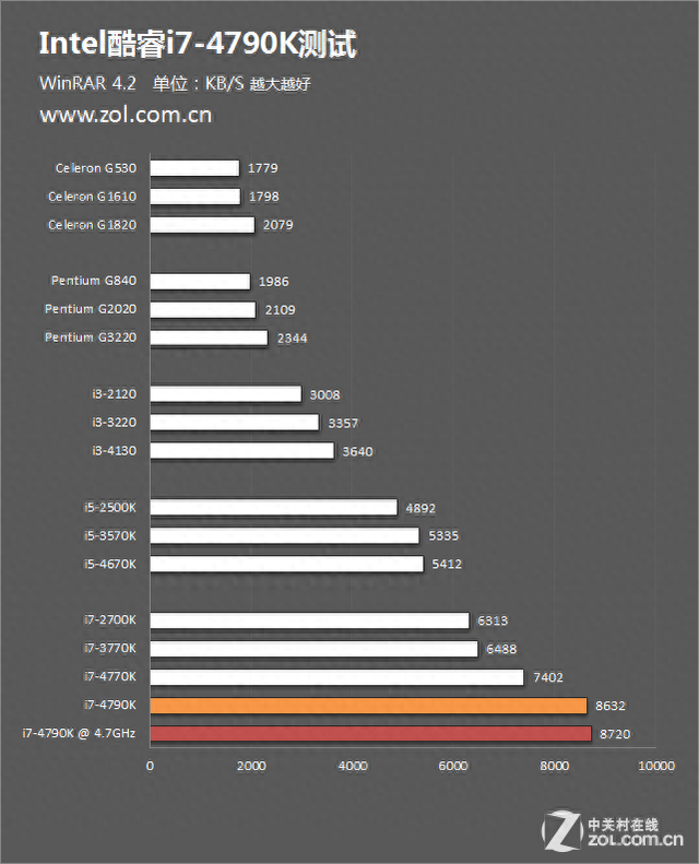 @4.7GHz:WinRAR 4.2成绩为8720KB/S