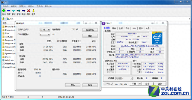 7-Zip测试成绩对比