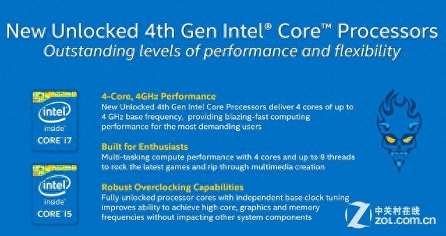 而那些想要尝鲜使用“恶魔”的Intel 8系平台用户也完全无需更换主板。尽管早先Intel声称8系主板并不能支持Devil's Canyon的倍频解锁CPU,但是Intel最新官方消息称即使是8系主板也可以完美支持Devil's Canyon处理器,所需要做的只是更新主板BIOS。