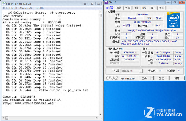 @4.7GHz:Super π 1M成绩为7.644秒