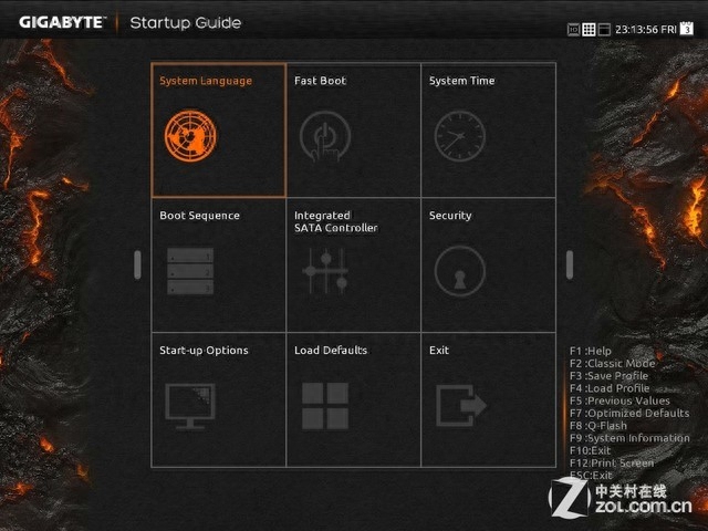 本次技嘉9系主板加入了全新的Startup Guide BIOS模式,既直观又美观,且操作方便。当然了,如果我们想要详细的调节各项参数,只需按下键盘上的F2键即可进入高级模式。