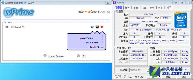 @4.7GHz:wPrime 32M成绩为5.85秒