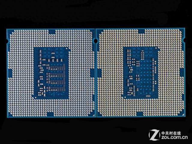 i7-4790K(左)相较i7-4770K(右)在背部拥有更多电容元器件,保证电源强度及稳定性