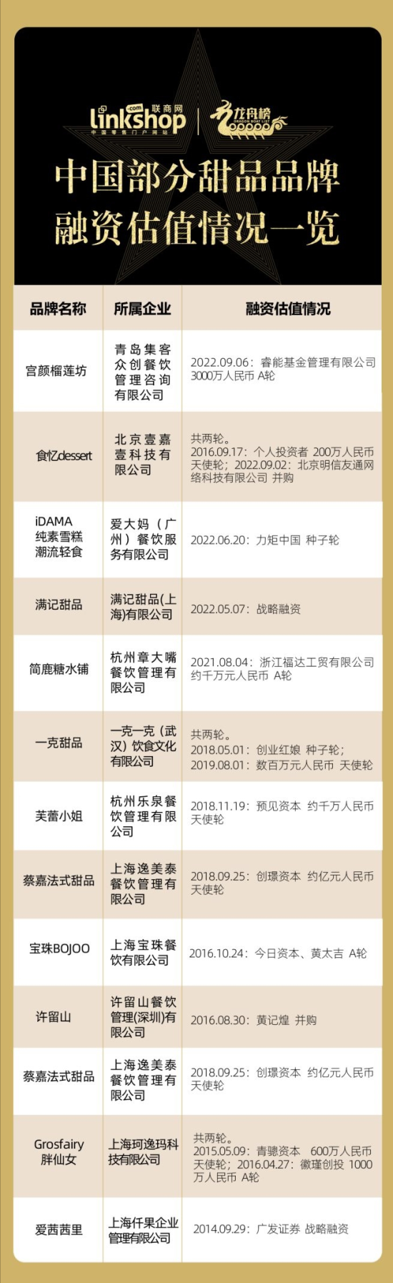 注:上述甜品品牌融资统计面向的是电商以及实体零售甜品连锁品牌。