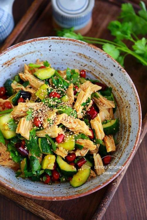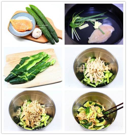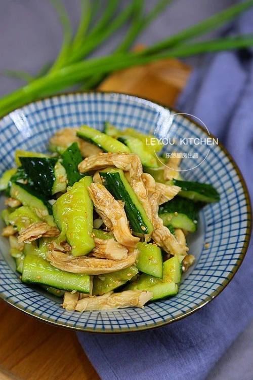 把黄瓜、鸡胸肉这两样减肥食材搭配在一起凉拌一下,鲜嫩清爽,饱腹感又强,很适合减肥时吃。