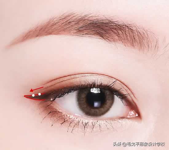 从眼部中间开始,小笔触来回描画,接着是眼尾,最后是眼头,注意一定要