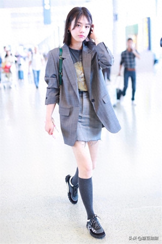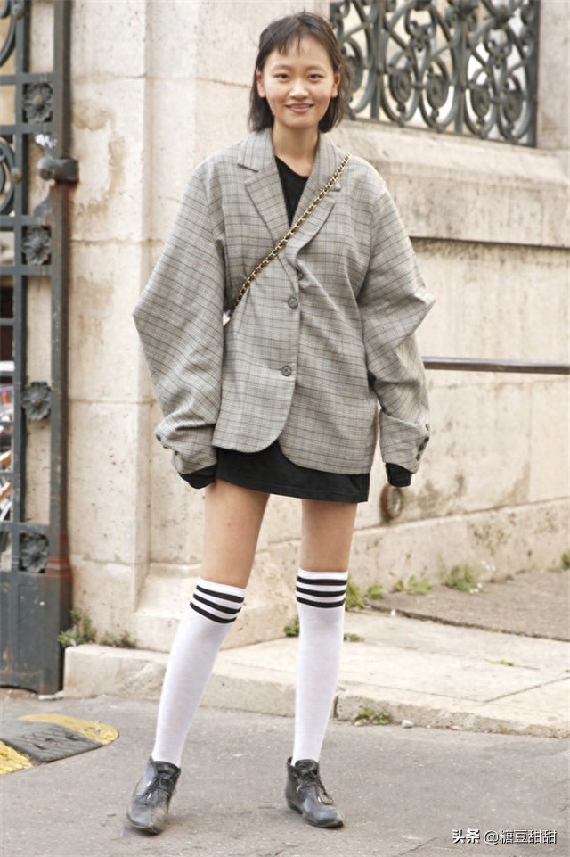 像是短裙和过膝袜贴合在身体部位的就非常合适,所以,这样的搭配就避免了太过宽大造成的尴尬。
