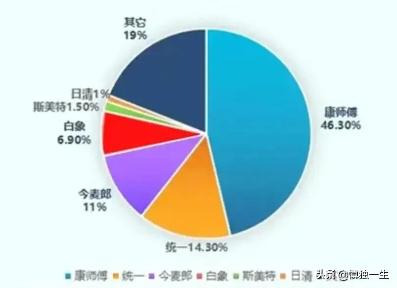 #315晚会曝光土坑酸菜#昨晚曝光后,查了一下市场份额,台湾双雄占比超过60%,占据了半壁江山,其次是内地品牌今麦郎和白象。