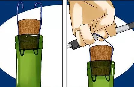 3、将挂钩从软木塞的一侧伸入瓶中,旋转挂钩并钩住软木塞,将其拖出。