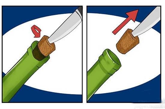 1、不要软木塞了,用筷子或合适的木棍把禁塞推进去。