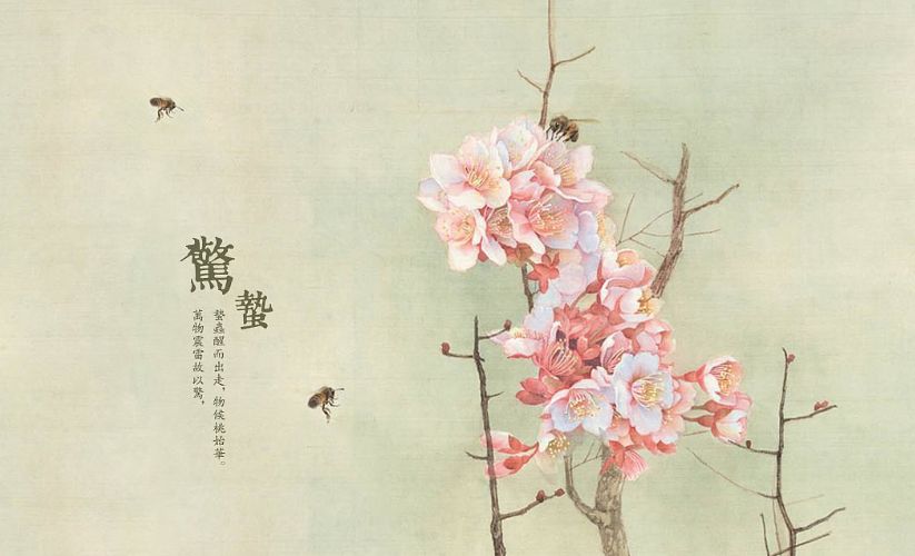 “惊蛰”即,天上打雷,惊醒蛰居的动物