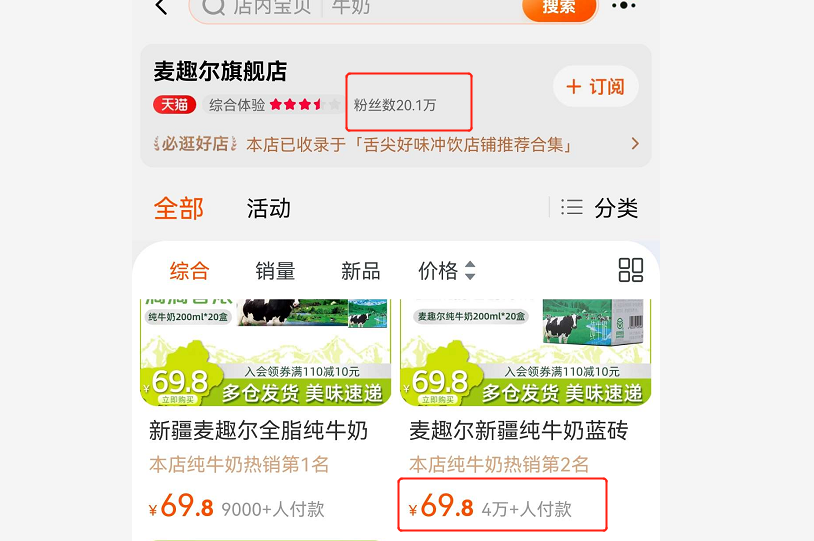 要知道麦趣尔是属于国内的一个大品牌,在某猫旗舰店有20万的粉丝,而麦趣尔的这款纯牛奶在某猫上有4万以上的人付款,可以说是一款销量非常好的牛奶。