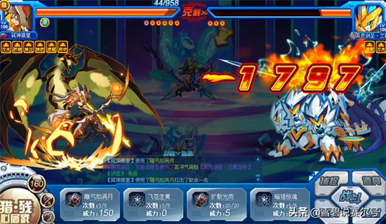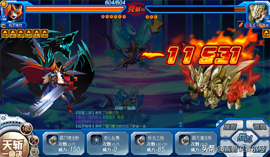 王哈首先必须迅速击杀!每次攻击清掉我方一个技能PP,在不能补PP的关卡里显得坑爹至极,自爆接屠龙先三秒掉王哈顺便偷一手强化,然后机械石稳定处理掉克劳迪亚,大招处理掉弥卡尔;自爆接犀牛秒掉莎娜,然后送掉天尊,上螳螂强化一手机械石秒杀白炎,天河圣芒斩秒掉最后的刀神。