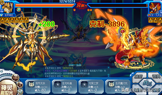 依旧是万能的圣谱,由于精灵只吃暴击,因此要强满放璀璨圣光加圣光气引爆再来击杀,不过如果被破防一定要及时补上防御防止翻车。
