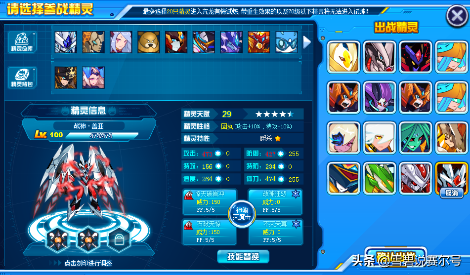 基本规则:允许携带20只精灵进入试炼,挑战过程中精灵无法回复PP和体力,每次最多使用6只精灵来挑战,通过9关即可通过本关,每天15次挑战次数,挑战过程中刷新则自动判定精灵死亡。