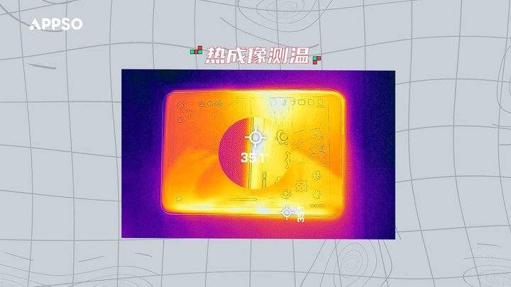 即便经过 30 分钟的原神考验,之后用热成像测温枪一试,最热处竟是在背部左下角位置, 温度显示为 35°C 左右,看来 iPad mini 6 的控温做得还是不错的。