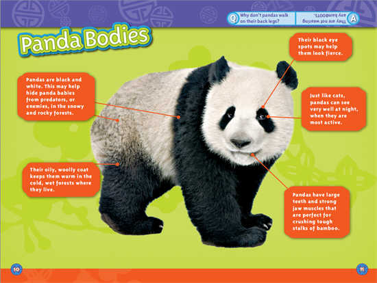 大熊猫是黑白色的,这有助于大熊猫宝宝们在有雪和石头的森林里隐藏自己;