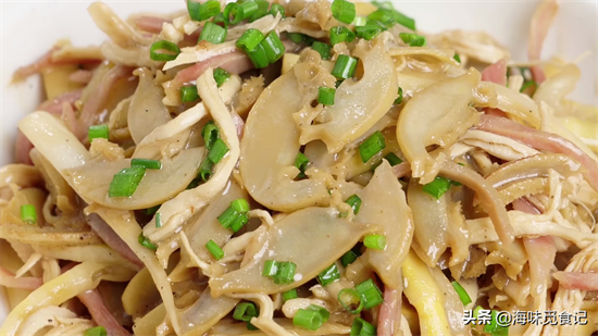 鲍鱼片最简单的四种家常做法 ,鲍片烩三丝,融合火腿和鸡胸肉的香,美味极了