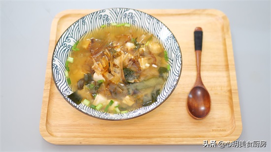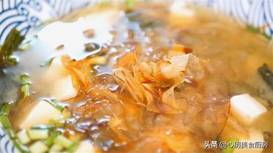 2、很多人都味噌汤为什么做出来感觉总是怪怪的,不一样,但是因为正确的做法,味噌下不能直接丢到汤里面,先留一个悬念,我们讲下一步正宗的味噌汤是需要用到昆布,那么昆布,其实是海带里面的一种,那么没有昆布怎么办呢?我们就可以改用裙带菜、海带等等,裙带菜的口感也是一样的。