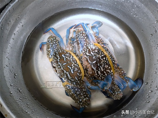 1、根据自己所需提前购入新鲜鲜活的螃蟹回家,买的是花蟹,回家之后将花蟹放入清洗盆中清理干净,可以戴个手套用牙刷里里外外刷干净。