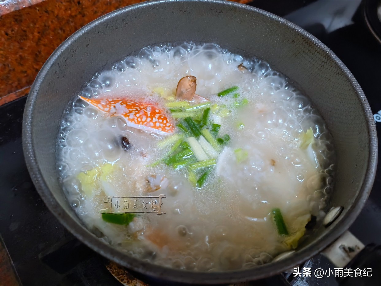 熬粥的过程中需要时不时搅动以免糊锅。盐尽量少放,才能保持海鲜的鲜甜。