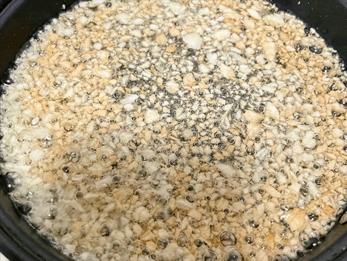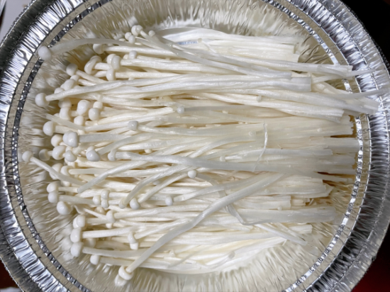 3、把蒜蓉倒在金针菇上面,放入空气炸锅中,调至180度烤18分钟左右,等时间到了,取出金针菇,色泽金黄,鲜香美味,看着就很有食欲,直接开吃即可。