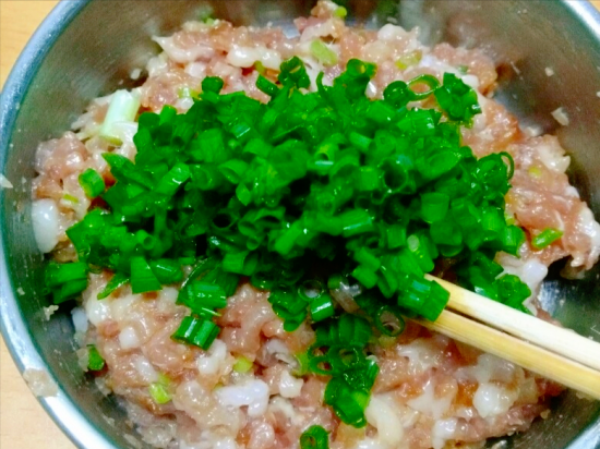 1、准备适量的五花肉馅,按照个人的口味,依次加入2勺生抽、1勺蚝油、1勺料酒,适量的淀粉、食盐和味精,搅拌均匀。