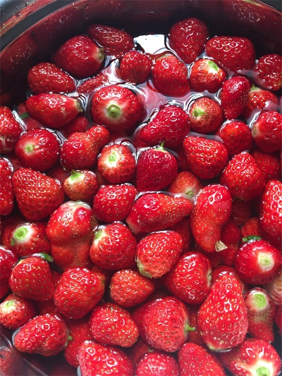 洗草莓时,注意千万不要把草莓蒂摘掉,去蒂的草莓若放在水中浸泡,残留的农药会随水进入果实内部,造成更严重的污染。另外,也不要用洗涤灵等清洁剂浸泡草莓,这些物质很难清洗干净,容易残留在果实中,造成二次污染。