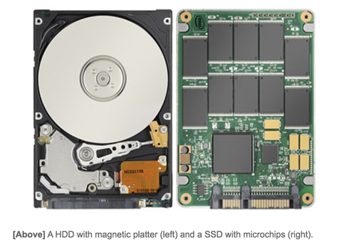 虽然您想要淘汰的旧计算机很有可能拥有硬盘驱动器磁盘(因为它是一种较旧、较慢的数据存储形式),但较新的计算机正在迅速采用称为固态驱动器或 SSD 的新标准。这些包含您可能在手机内部对绿色电路板进行描绘的微芯片。