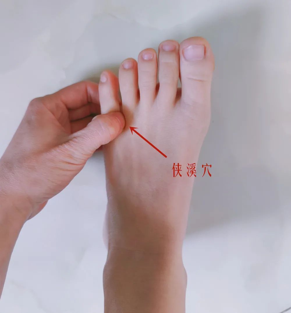 侠溪,如同一条细小的溪流,有泄胆腑之热的作用,能祛除口苦,按揉方法同内庭穴。
