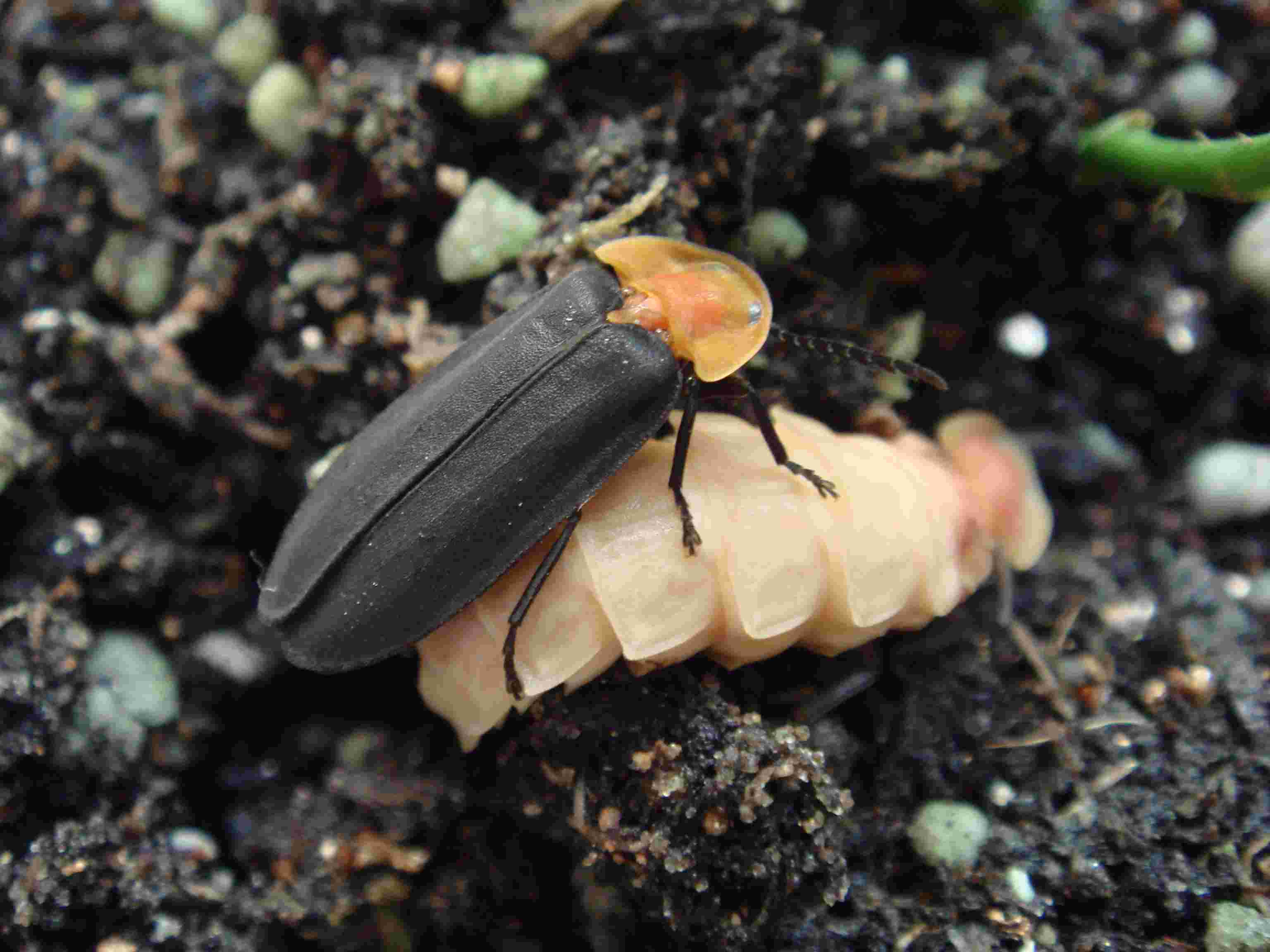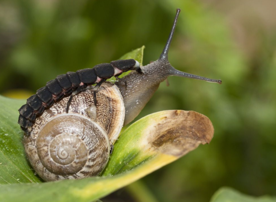 萤火虫幼虫在户外发现蜗牛后,会小心翼翼地爬到其背上,用口器轻轻敲打蜗牛,看似在“按摩”其实是“放毒”。口器中分泌出类似麻醉剂的物质,注射到蜗牛的体内,让蜗牛在享受中被麻醉。