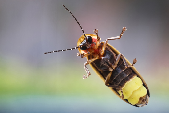 由于萤火虫生长阶段不同,发光器所在位置也有所不同,幼虫的发光器位于腹部的第8节两侧,蛹的发光器与成虫极其相似,都在腹部末端的1~2节。
