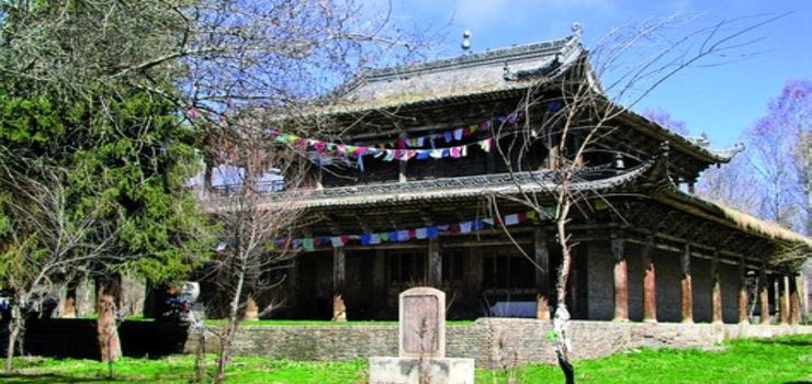 圣佑庙坐落在新疆昭苏县城西北,天山脚下的洪那海河畔,清幽肃穆,壮观宏伟,现存建筑8座,四周围墙环绕,是中国边锤难得的一处古建筑。圣佑庙建筑宏伟壮观,气氛庄严肃穆,是这一带蒙古族牧民求神祈祷的场所。坐北朝南,布局严整。中轴在线依次陈列有照壁、山门、前殿、大殿和后殿,东西两侧各有硬山顶的配殿,并有东楼、西楼与之相对应。院中还修建有八角形平面的两层两檐楼亭。 大殿的平面为方形,有七开间。二层为歇山顶,出檐深远,举折高。