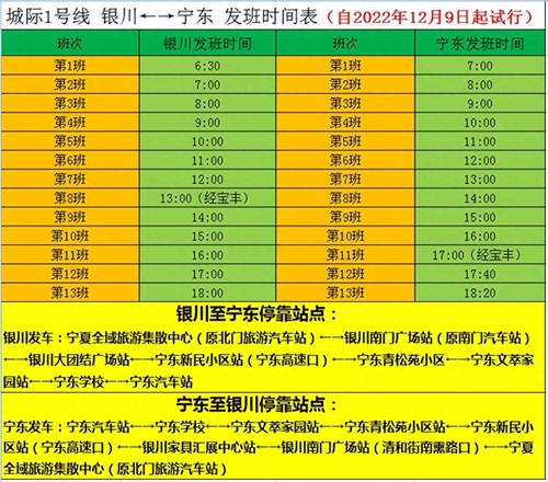后期根据客流情况,适时增加班次。您可持续关注“宁夏出行”公众号获取最新发车时间及通知!