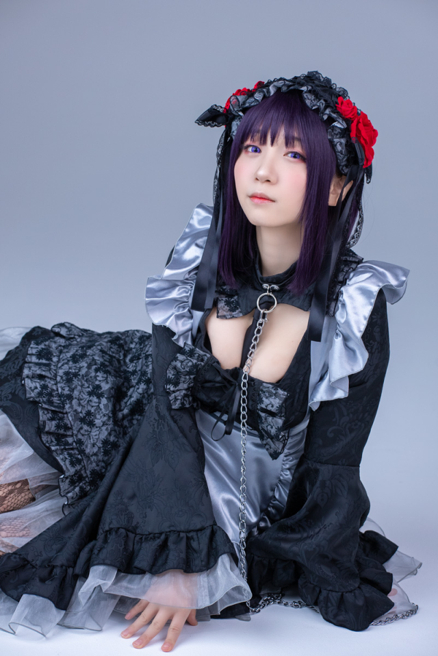 先前在动画化宣布以及动画开播时就拍摄过合作宣传照的伊织萌,这次则是在Cosplay 杂志「Cosplay Mode」拍摄内页,穿上与黒江雫一样的服装,并与剧中设定的一样附上带有铁链的项圈,楚楚可怜的眼神又略带色气的模样,很难不被她勾走芳心阿
