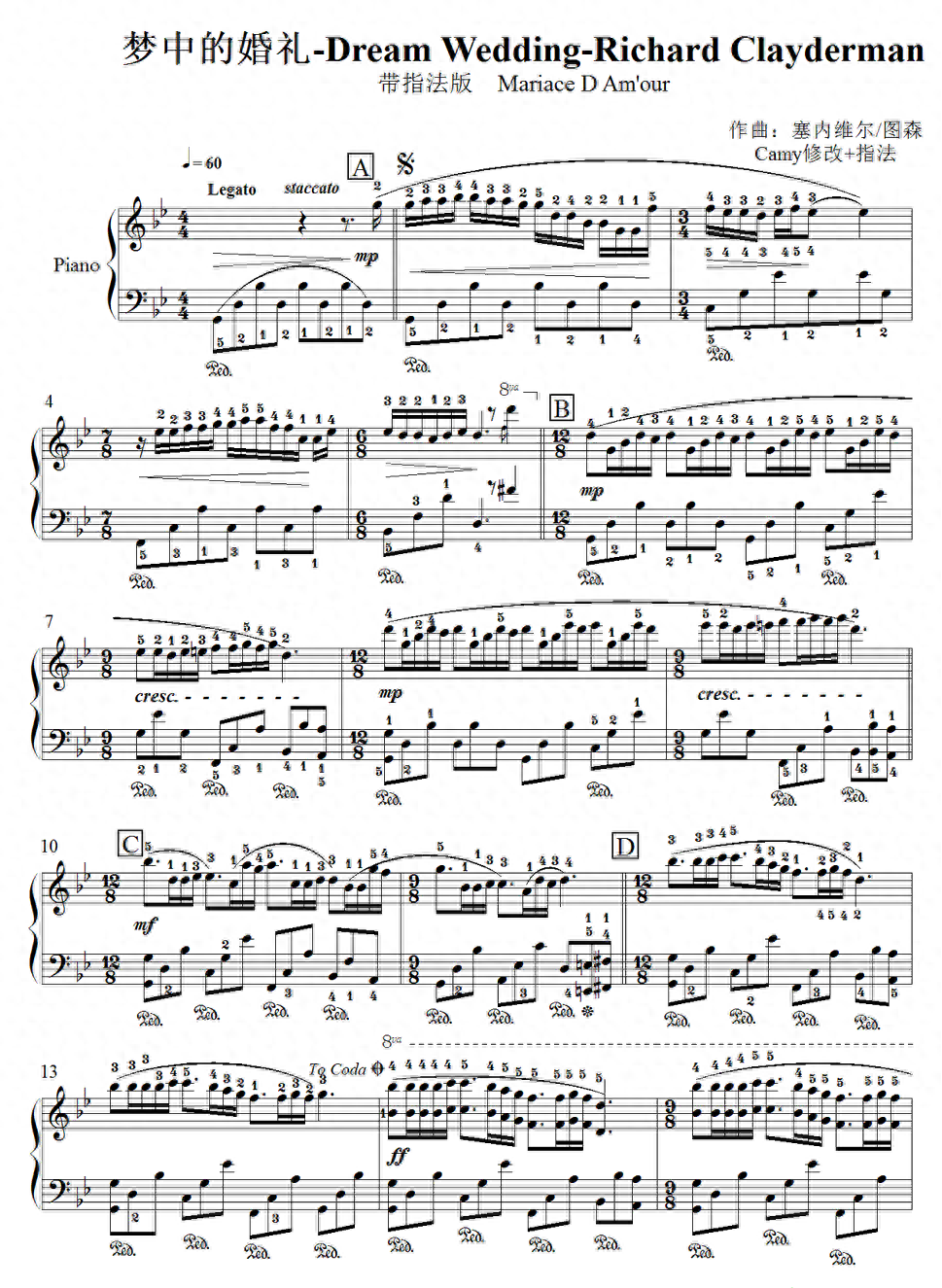下面给大家分享《梦中的婚礼》钢琴谱:
