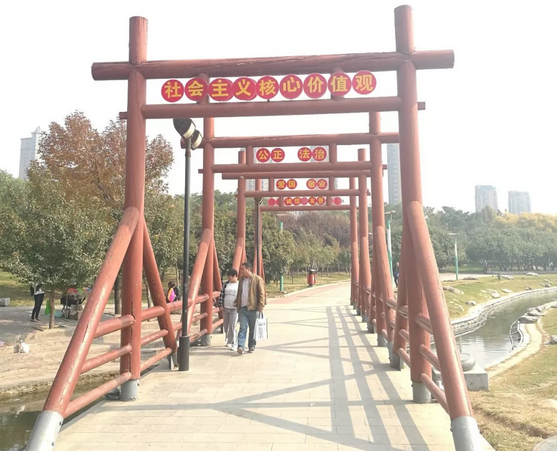 漫步易园,看到的是遍布各个角落休憩或是健身的市民。面对着优美的环境,呼吸着清新的空气,他们神情悠闲,怡然自得。易园中各种灌木、乔木、绿植层次分明、色彩丰富;太极湖微波荡漾;蜿蜒起伏、山水相间的地形地貌;曲径通幽,样式多样的园路交织贯通,随处可见广场、坐凳、园林小品展现了一副人与自然和谐相处的画面。