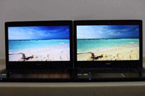 左边是45%色域,右边是72%色域。一眼就看出来明显右边显示的画面更加鲜艳。而直观点说就是饱和度不高的同一张图片摆一起看,72%看是彩的,45% 第一感觉是黑白的,仔细看看能看出来是彩的。