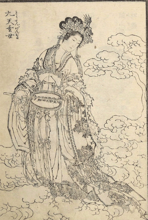 》:"元始天王在天中心之上,名曰玉京山,山中宫殿,并金玉饰之,常仰吸天气,俯饮地泉。复经二劫,忽生太元玉女,…号曰太元圣母。元始君下游见之,乃与通气结精,…又生九光玄女,号曰太真西王母"。