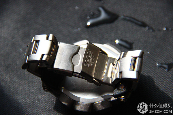 外观真的很阳刚,表盘直径达到了五公分,带出去确实显得很霸气,钛金属的加入让这款表不再像是玩具表的感觉,重点说一下这个钛金属,是一种很优秀的金属,多用于航天领域,好多顶级跑车的排气也采用这种材质(帕加尼这类的吧,说错了轻喷),当然合金成分略有差别,优点是重量轻,硬度大,耐腐蚀性强,缺点是不耐划,造价高,买来几个月表链已经有相当多的划痕。